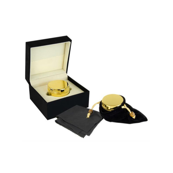 Dieser luxuriöse Grinder wird in einer schönen Geschenkbox geliefert, zusammen mit einem Samtbeutel zur Aufbewahrung sowie einem speziellen Poliertuch, um die Aussenseite des Grinder stets auf Hochglanz halten zu können. Die Goldschicht wird sich im Laufe der Zeit durch Schweiss an den Händen abnutzen. Um die Lebensdauer zu verlängern, empfiehlt sich eine regelmässige Politur.