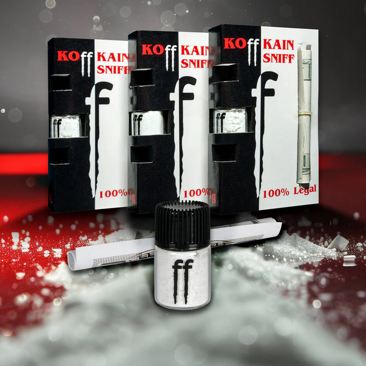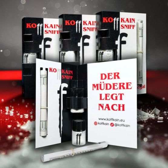 KOffKAIN ist ein feines Pulver, das speziell zur nasalen Inhalation (Sniffen) entwickelt wurde. Eine kleine Menge mit beiliegendem Werkzeug aufnehmen, sanft durch die Nase ziehen und den schnellen Energy-Kick erleben.