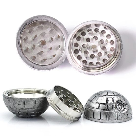Metallischer Grinder im Look des Todessterns mit herausnehmbarem Pollensieb