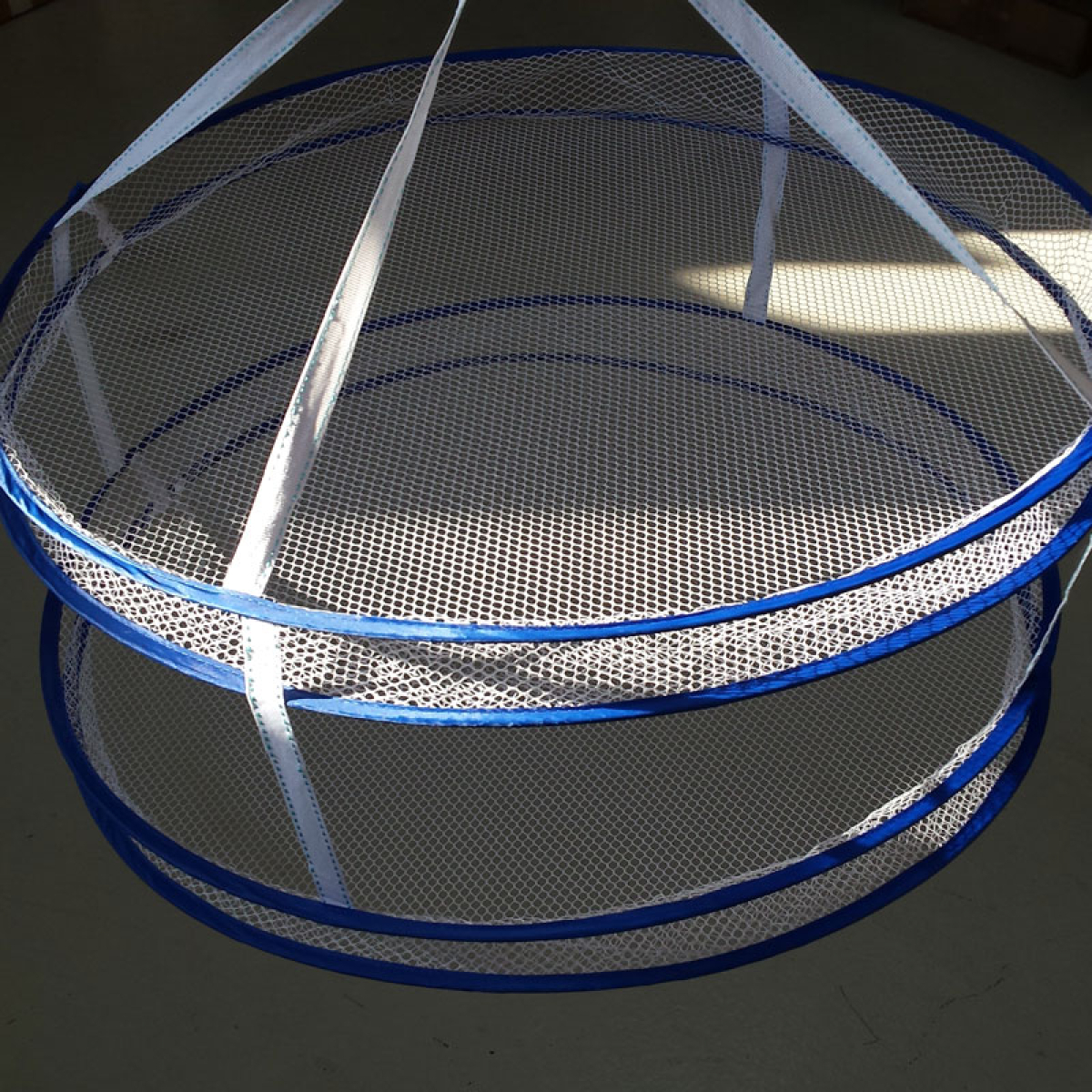 Dieses Netz ist ein hochqualitatives Produkt, welches zur Trocknung von diversen Pflanzenmaterialien verwendet werden kann. Mit 2 Stöcken und einer Aufhängeschlaufe ist es sehr benutzerfreundlich. Sein Design erlaubt es dem Verwender das Material schnell einzufüllen und wieder zu entfernen. Dieses Netz bietet alles, was es für eine schnelle, professionelle Trockung braucht: Das Pflanzenmaterial kann auf 2 Stockwerken luftig ausgebreitet werden. Damit bietet es ein unglaubliches Platzvolumen auf kleinstem Raum. Achten Sie bei der Trocknung immer darauf, dass das Material an einem trockenen, zimmerwarmen Ort aufbewahrt wird. Ansonsten können Schäden wie gesundheitsschädlicher Schimmelbefall entstehen. Masse: Durchmesser 60cm x höhe 70cm, Tablarrand höhe 6cm Passt perfekt in jedes Zelt, welches mindestens 60cmx60cmx160cm gross ist.