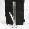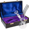 Die solide Bong besteht aus Borosilikatglas, kann auf ihrem Stutzen stehen und beinahe auch als Ausstellungsstück durchgehen. Sie ist insgesamt 50cm hoch und das Metallchillum ist im Normschliff 14,4mm gehalten. Ein Kickloch ist integriert. Das Metallchillum und das Kickloch sind recht hoch angesetzt, was eine grosses Wasservolumen zulässt.