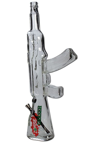 Die Zombie Chaser Maschinengewehr-Bong wird beim Weltuntergang zur Verteidigung gegen Zombies kaum nützlich sein. Um sich aber nach einer harten Abwehrschlacht etwas zu entspannen kann sie Wunder wirken. Egal ob auf dem Hausdach eines Einkaufszentrum oder einer sicheren Bohrinsel, die Zombie Chaser Maschinengewehr-Bong kann einem den Kopf wegblasen.